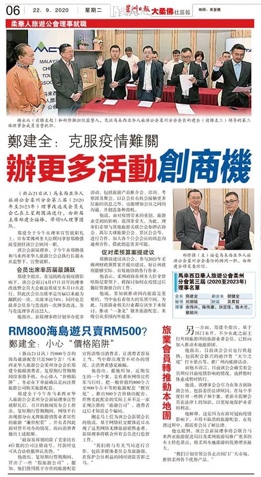 本公司负责人Vin Ng 在旅游行业超过20年,也曾担任马来西亚华人旅游业公会柔佛分会财政与理事,为推广旅游业尽心尽力